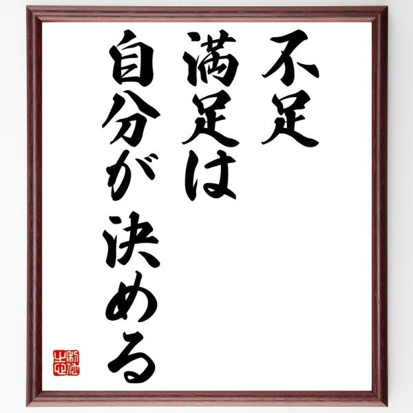 名言「不足、満足は自分が決める」手書き書道色紙額/受注後の毛筆直筆