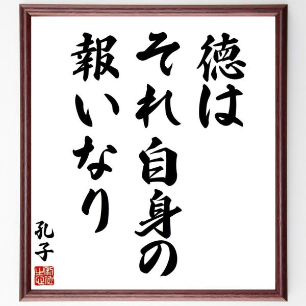孔子の名言「徳はそれ自身の報いなり」手書き書道色紙額/受注後の毛筆直筆