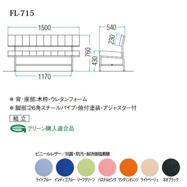 ロビーチェア 1500 病院 待合室 椅子 病院待合椅子 長椅子 背付 ビニールレザー FL-715 W150XD54XH76 SH43cm 医療施設 薬局 医院 待合