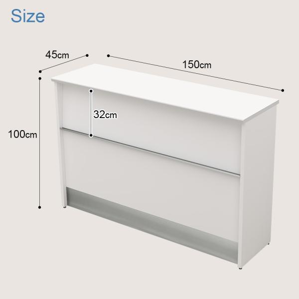 受付カウンター ハイカウンター スチール 幅150cm 奥行45cm 高さ100cm スチールカウンター ホワイト 受付 接客 オフィス HCS-1545-WH