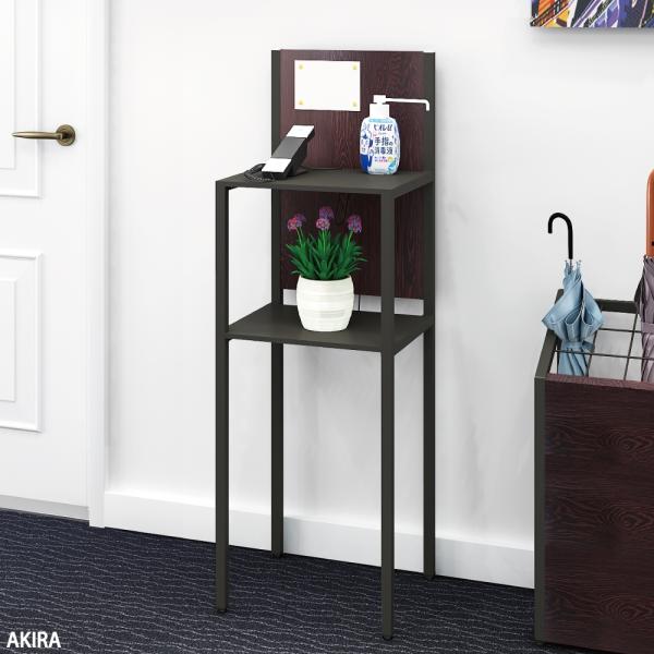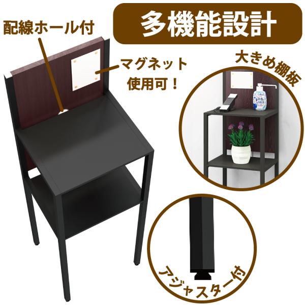 無人受付カウンター 電話台 荷物置き台 ブラック ダークブラウン 幅36cm 奥行32cm 高さ110cm スリム 受付 オフィス TS-3632-BKDB