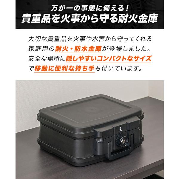金庫 耐火 防水 手提げ 小型 5L 手提げ金庫 A5 幅38cm x 奥行32.5cm x 高さ16.5cm 家庭用 ポータブル 鍵 チューブラーキー UL規格 貴重品 収 1年保証 送料無料
