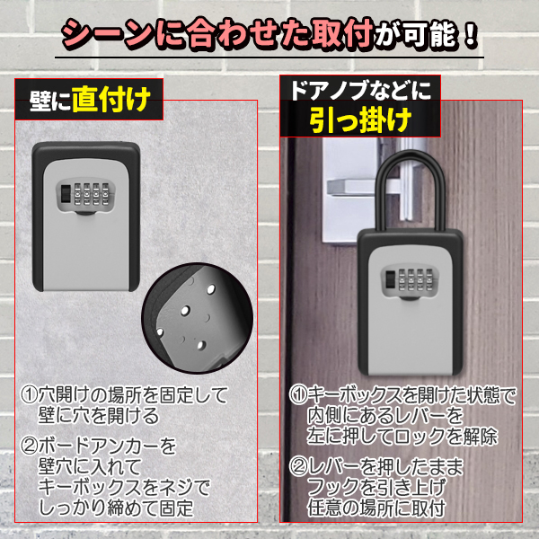 キーボックス 鍵 収納ボックス 壁掛け 屋外 防水 ダイヤル式 鍵収納 セキュリティボックス 防犯キーボックス 暗証番号 大容量 操作簡単 ロックポケット 南京錠