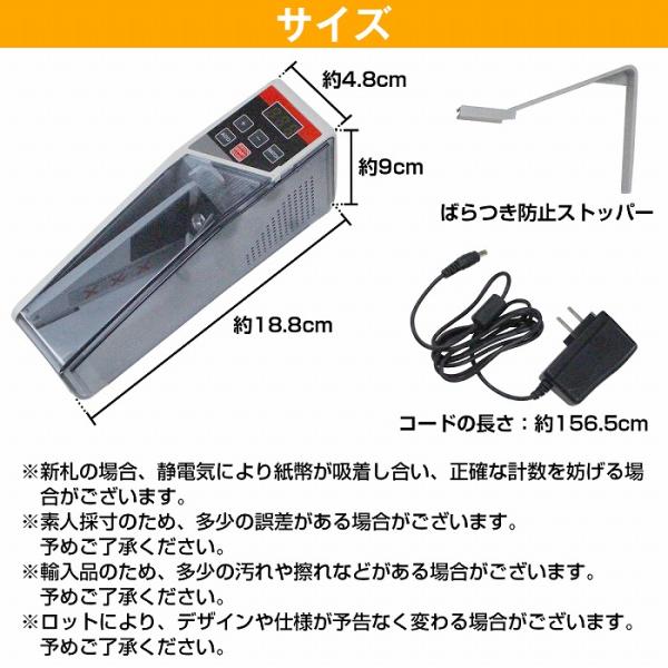 マネーカウンター 自動紙幣計数機 ハンディ 札 紙幣 枚数 計測 3桁 ケース 電池 単3 持ち運び 外国 会計 小型 高速 ばらつき防止 LED