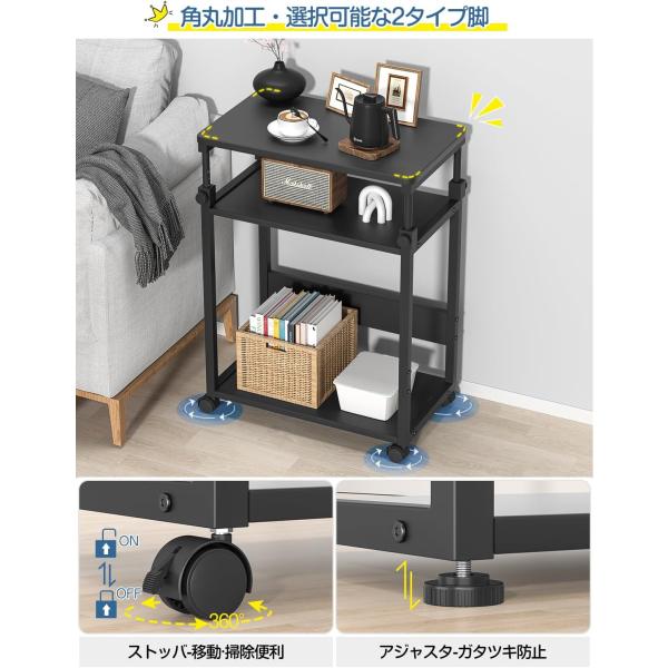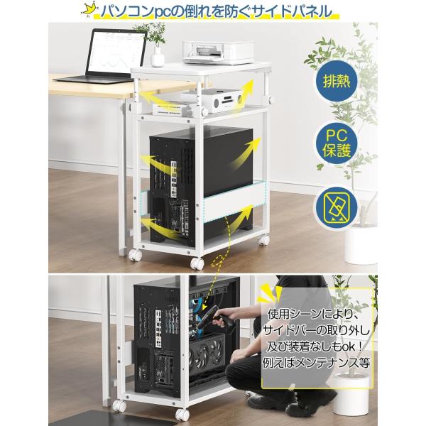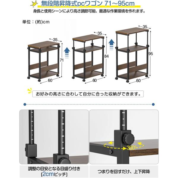 パソコンワゴン pcラック cpuワゴン 昇降式 天板高さ調節可能 幅60×奥行35×高さ71〜95cm キャスター付き pc 棚 デスクワゴン パソコン収納 木製 サイドワゴン