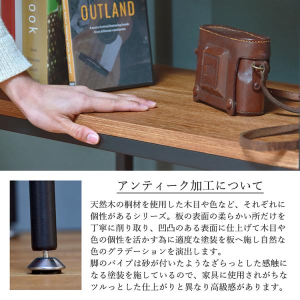 オープンラック 木製 3段ラック ZAGA 幅90 シェルフ マガジンラック 天然木 桐材 パイプ脚 収納棚 飾り棚 アンティーク加工 転倒防止ベルト付き ヴィンテージ風