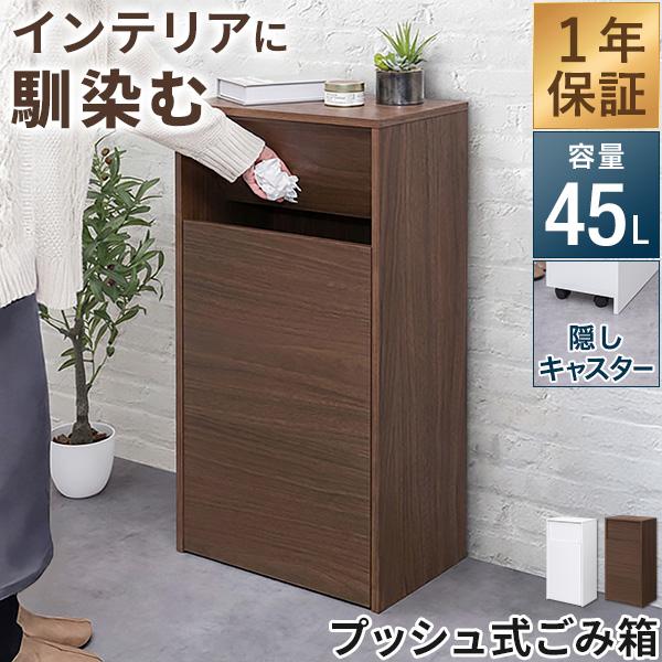 ゴミ箱 プッシュ式 45リットル ダストボックス スリム ふた付き 大容量 おしゃれ キャスター付き 店舗用 分別 角型 スクエア 袋が見えない 1年保証 送料無料