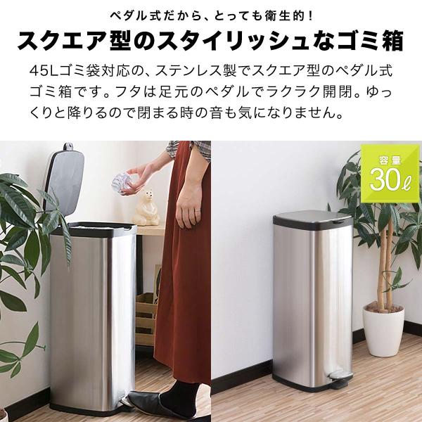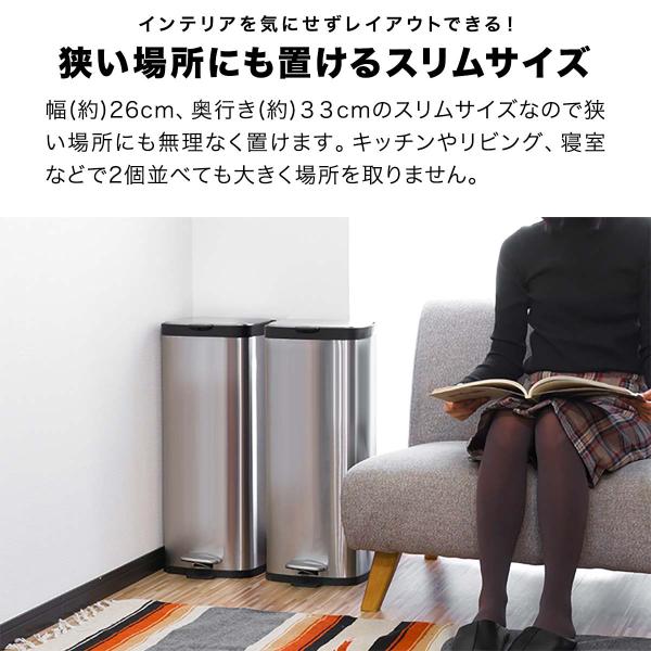ゴミ箱 ごみ箱 おしゃれ キッチン ダストボックスふた付き 30リットル ペダル開閉式 縦型 スリム ステンレス 幅26cm x 奥行き25cm x 高さ66cm 1年保証 送料無料