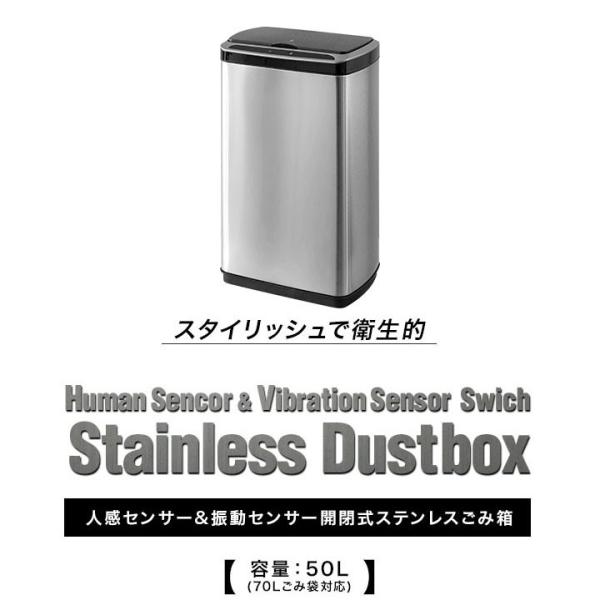 ゴミ箱 ごみ箱 おしゃれ キッチン リム ダトボック 自動開閉 50リットル 人感センサー 振動センサー ふた付き テンレ 角型 電動 1年保証 送料無料