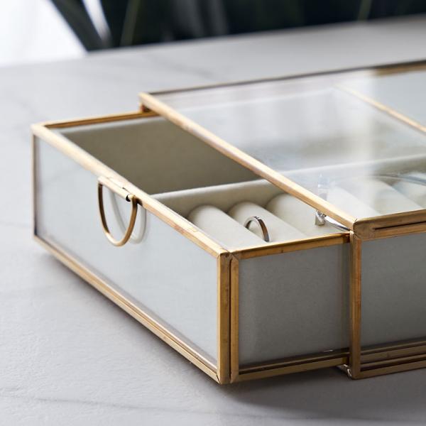 アクセサリー ケース ガラス 真鍮 引き出し ジュエリー ケース 収納 小物 ボックス 指輪 イヤリング ピアス アンティーク 雑貨 西海岸 インテリア 海 67069