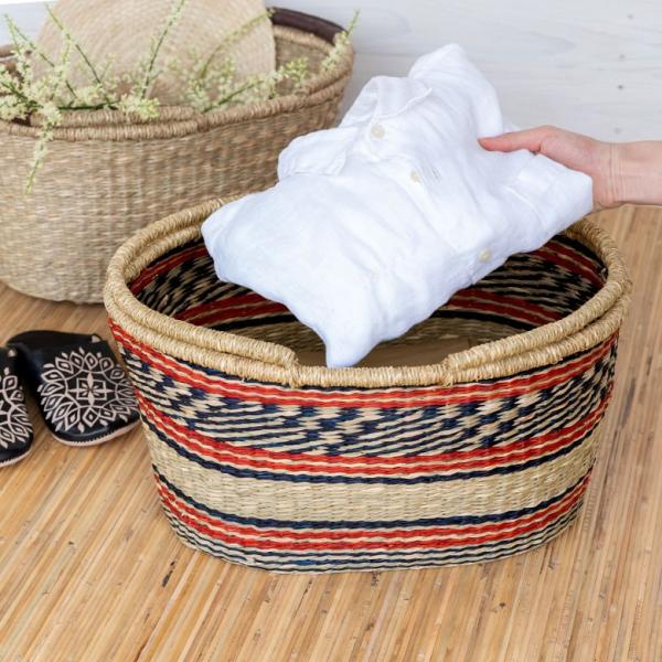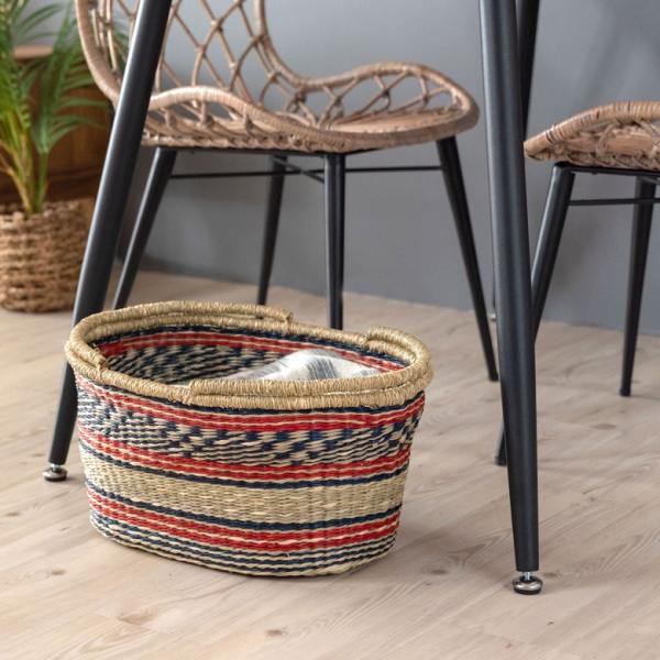 カゴ 収納 バスケット 持ち手付き カゴバッグ オーバル型 ミックス柄 シーグラス製 収納ボックス かご収納 アジアン おしゃれ 51201
