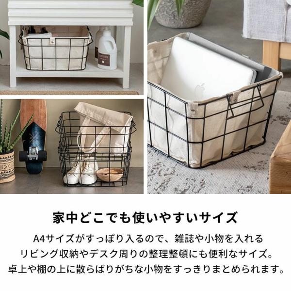 ワイヤー バスケット 持ち手 ランドリー Sサイズ 脱衣 収納 ボックス 1段 スチール かご 洗濯物 小物 入れ 内布 取り外し可 おしゃれ 北欧 西海岸風 64122