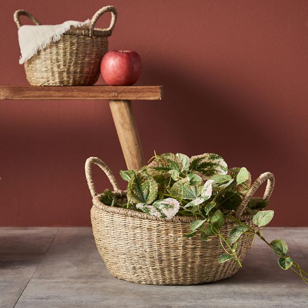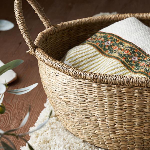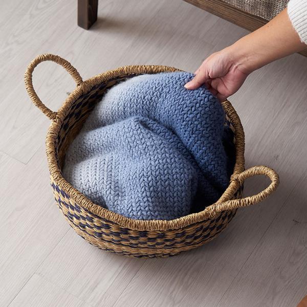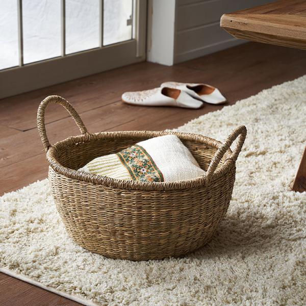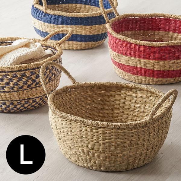 かご バスケット 持ち手 付き シーグラス Lサイズ ナチュラル 収納 荷物 入れ 衣類 おもちゃ 丸型 おしゃれ 北欧 西海岸 雑貨 l-vn5