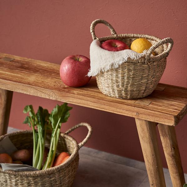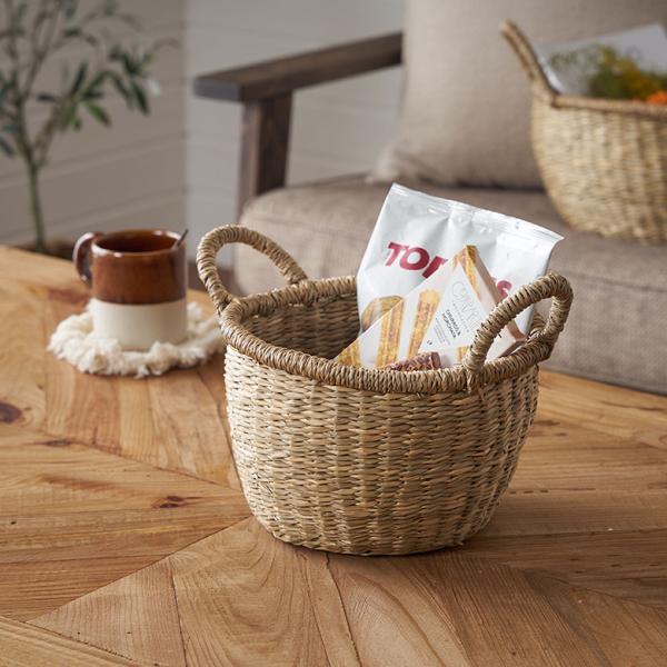 かご バスケット 持ち手 付き シーグラス Sサイズ ナチュラル 収納 荷物 入れ 衣類 おもちゃ 丸型 おしゃれ 北欧 西海岸 雑貨 s-vn50