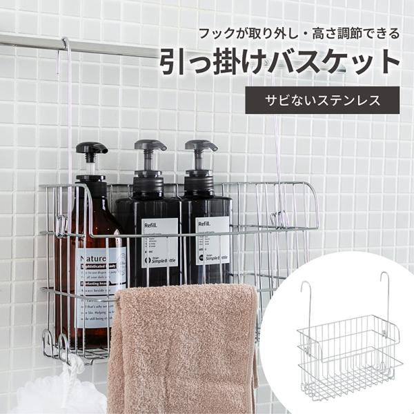 ステンレスバスケット お風呂収納 お風呂用 収納 バスケット バーに吊るせる 吊るせる 吊り下げ 引っかけ フック ハンギングバスケット ワイヤーバスケット