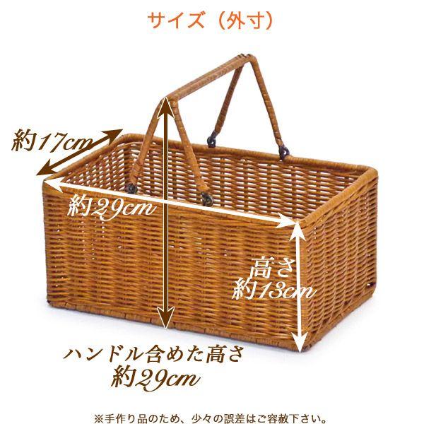 型番4005 籐かごバスケット 上質天然素材 小物収納 整理カゴ 倒れる取っ手付き 【かごのお店ラッセル】