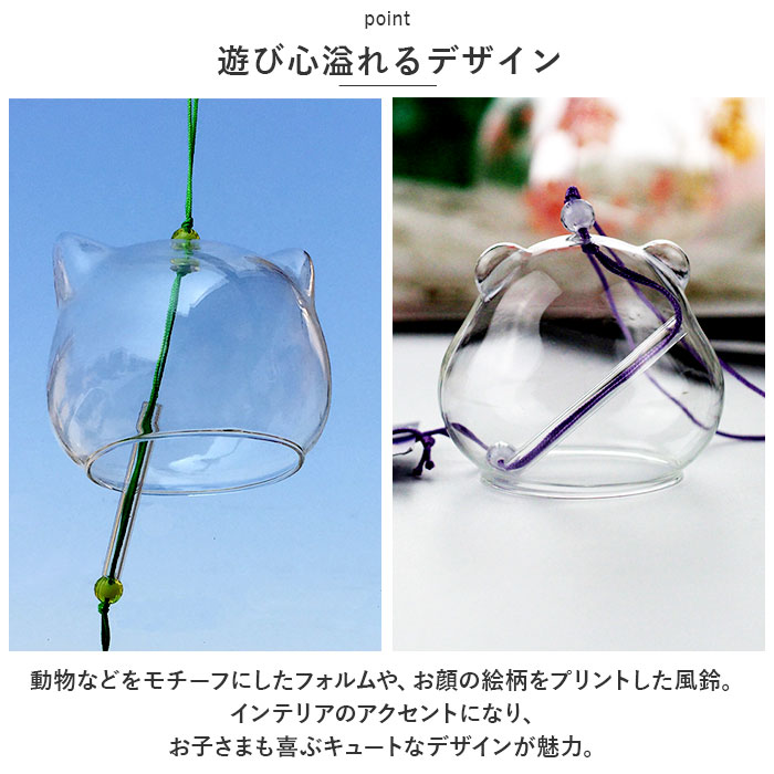風鈴 ガラス 通販 ガラス風鈴 ふうりん ねこ 猫 猫型 涼しい 涼しげ 小さい 夏 お盆 お中元 納涼 おしゃれ オシャレ ガラス雑貨 ウィンドチャイム リビング 風鈴