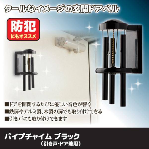 ドアチャイム 玄関 風鈴 パイプチャイム ブラック おしゃれ 引き戸 ドアベル 防犯 自宅 店 入り口 呼び鈴 ウインドチャイム マグネット 風水 鈴