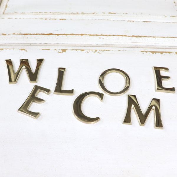 真鍮 ゴールド 45mm WELCOME 大文字 レター 真鍮 大文字 アルファベット 看板 表札 ネーム メール便