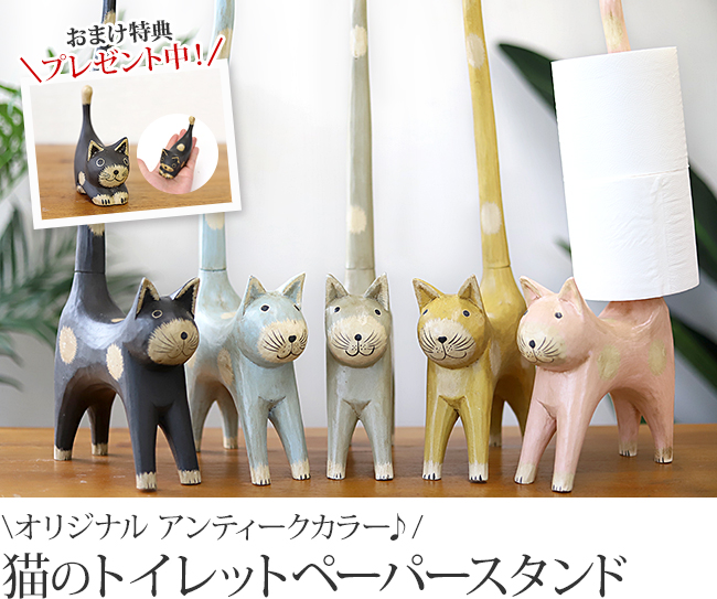 (特典付き) バリネコのトイレットペーパースタンド(アンティーク) ホルダー 予備 収納 トイレ インテリア 雑貨 ストッカー アジアン雑貨 バリ猫 グッズ 置物