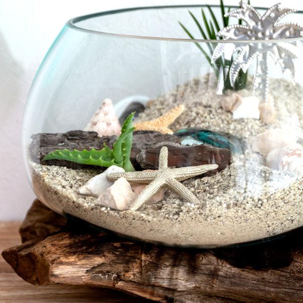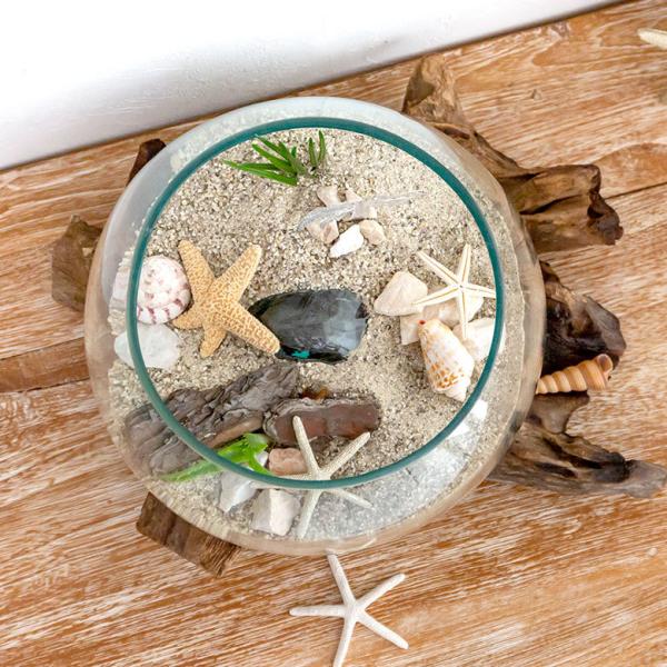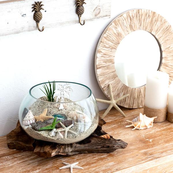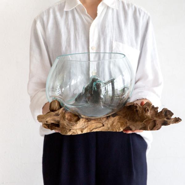ガラス鉢 流木 プランターオブジェ ガラスボウル オブジェ テラリウム 観葉植物 プランター ガラス容器 西海岸 男前 置物 Lサイズ アジア工房 12162