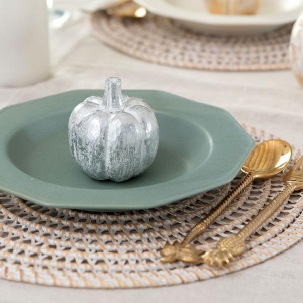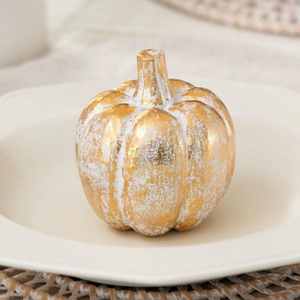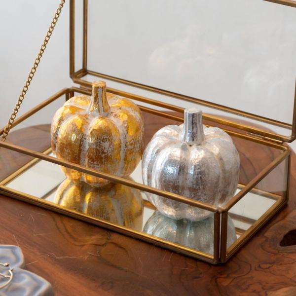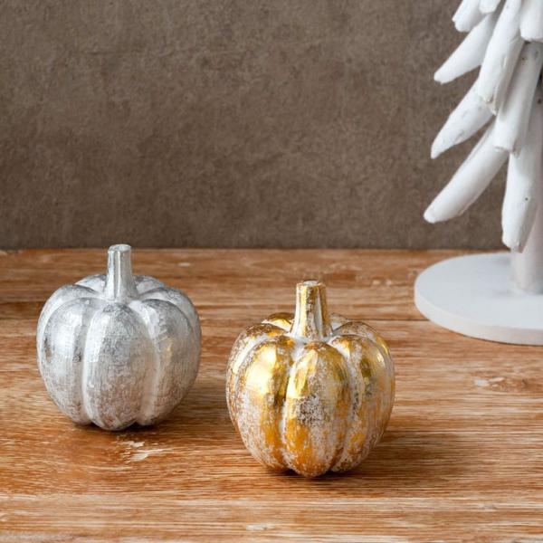 オブジェ ウッド 木製 木彫り 天然木 パンプキン かぼちゃ 野菜 シルバー ゴールド W 7.5cm D 7.5cm H 8cm 置物 バリ ハロウィン クリスマス 13899