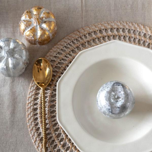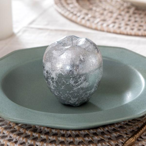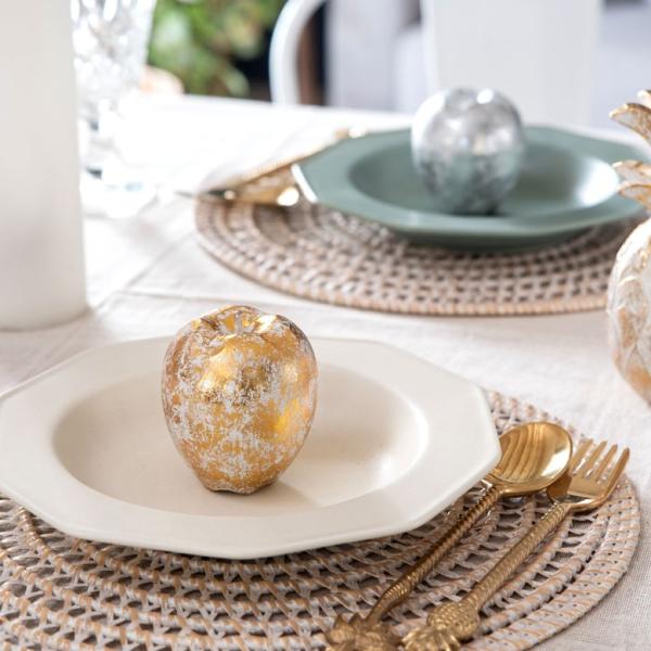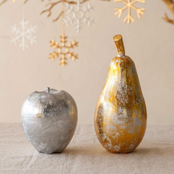 オブジェ ウッド 木製 木彫り アップル りんご リンゴ フルーツ 果物 シルバー ゴールド W 7cm D 7cm H 8cm 置物 バリ ハロウィン クリスマス 13901