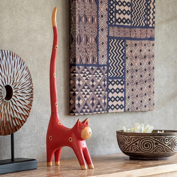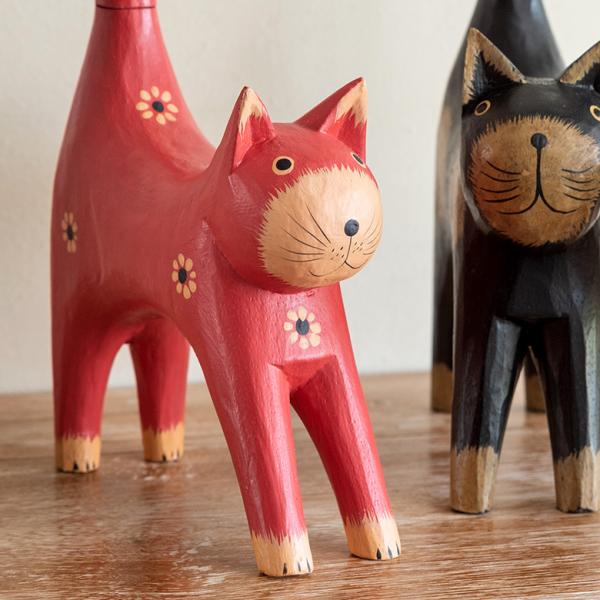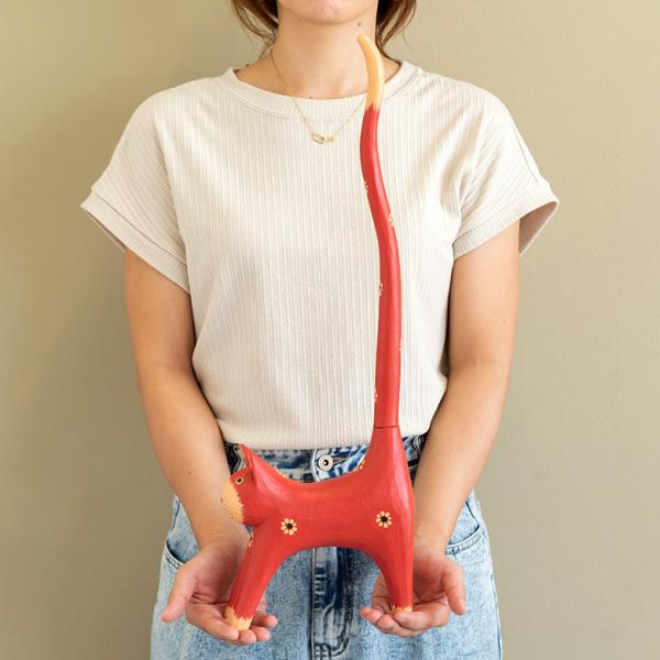 トイレットペーパー ホルダー 猫 ネコ 尻尾 バリ島 ピンク オブジェ 置物 木彫り ディスプレイ 収納 キッチンペーパー トイレ アジアン 雑貨 おしゃれ 13987