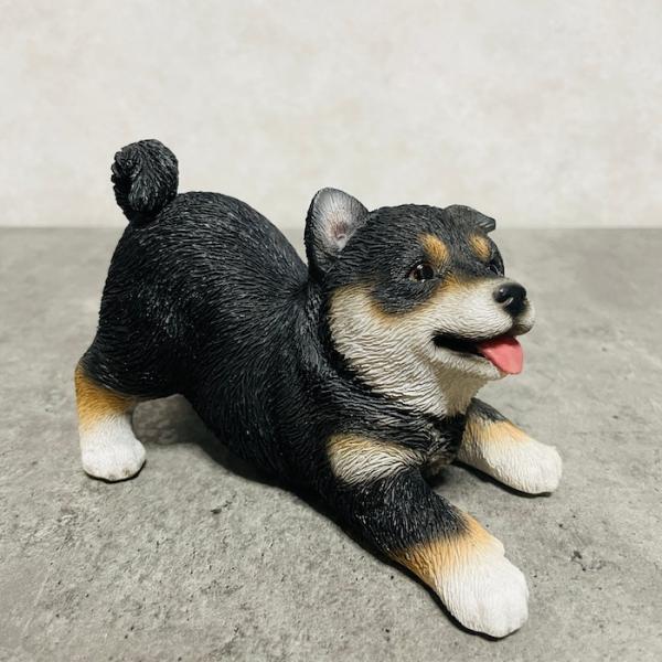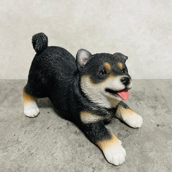 かわいい犬の置物 喜ぶ黒柴犬 グッズ 動物 おしゃれ 玄関 インテリア 卓上 ガーデン 庭 woobia ウービア