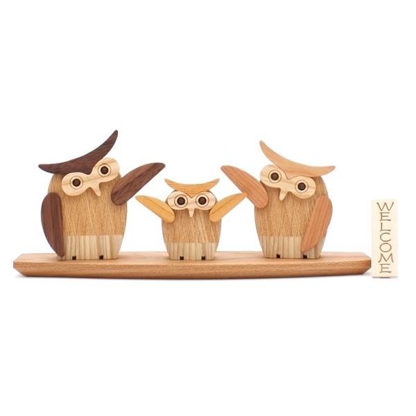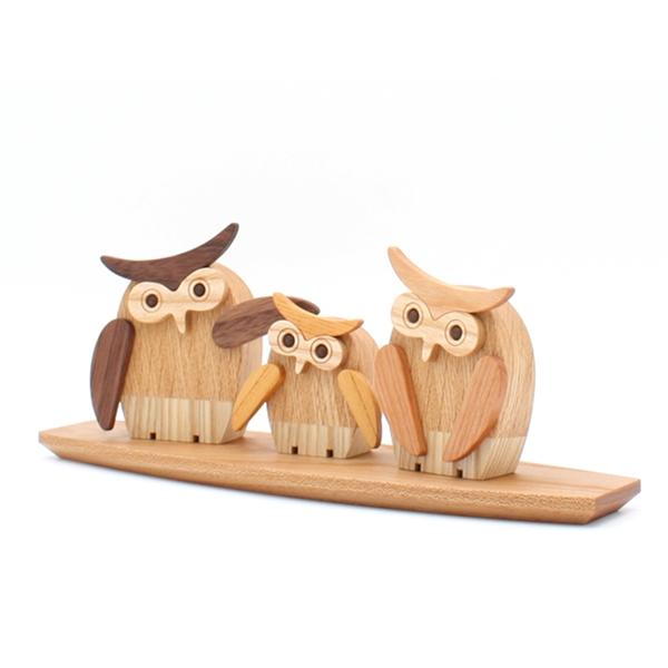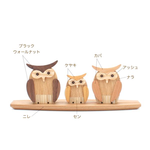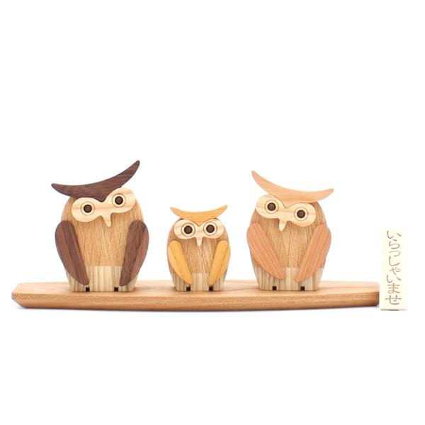 フクロウ 置物 ふくろう 置物 ふくろう家族 フクロウインテリア 梟 木製 ギフト 贈り物などに 開店祝い 新築祝い 結婚祝い 出産祝い 森林工芸館