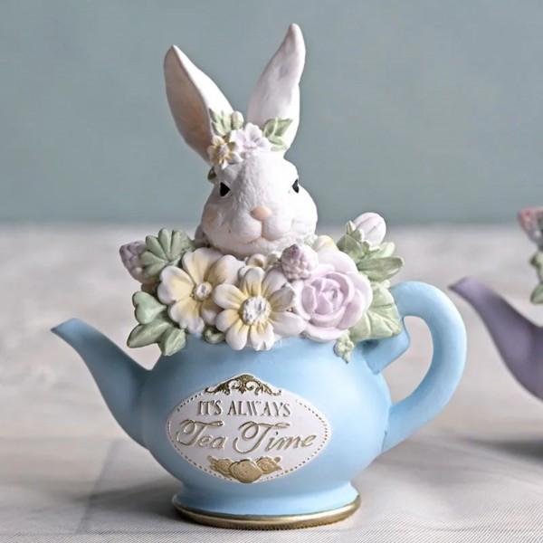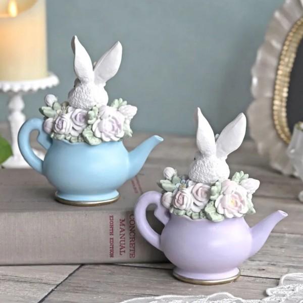 ラビット ティーポット オブジェ うさぎ ウサギ 置物 可愛い (1490) シャビーシック 姫系 フレンチテイスト 店舗装飾 バニー
