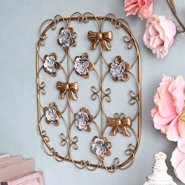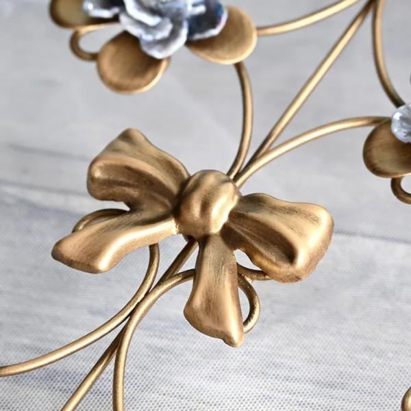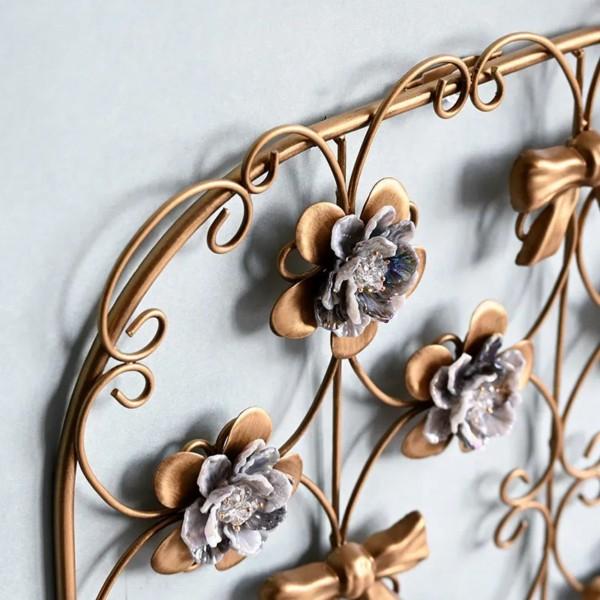 リボン フラワー ウォールデコレーション 壁飾り 壁掛け ゴールド 金属製 アンティーク調(1512)レトロ ヴィンテージ風 かわいい ロココ調 ヨーロピアン調