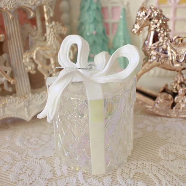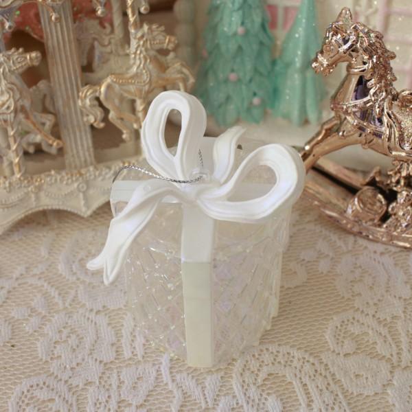 クリスマス ギフトボックス オーナメント クリア ツリーオーナメント リボン プレゼント かわいい テーキャンドルホルダー クリスマスオーナメント エレガント