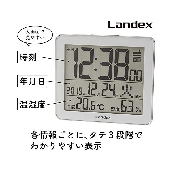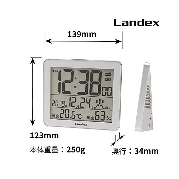 ランデックス(Landex) 置き時計 電波 デジタル スリーユニット 温度 湿度 カレンダー表示 シルバー YT5277SV1