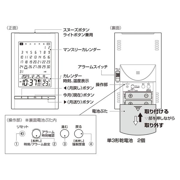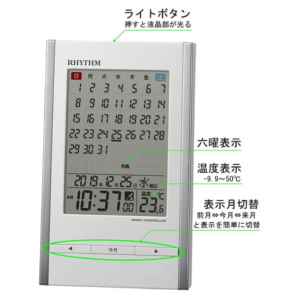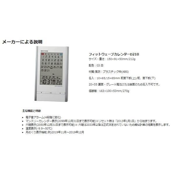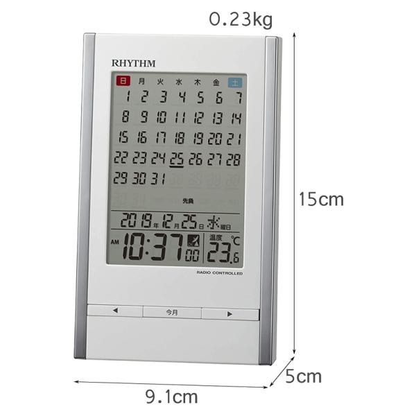 リズム(RHYTHM) 置き時計 目覚まし時計 電波時計 カレンダー 温度計 アラーム 白 15x9.1x5cm 8RZ210SR03