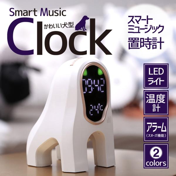 モダン 犬型 オブジェ時計 LEDライト アラーム スヌーズ ミュージック 時間 時刻 温度 消灯タイマー コードレス 3D 立体 時計 犬 目覚まし時計 デスク テーブル