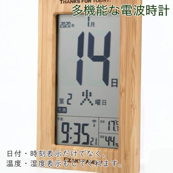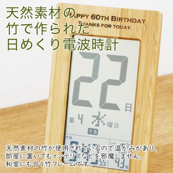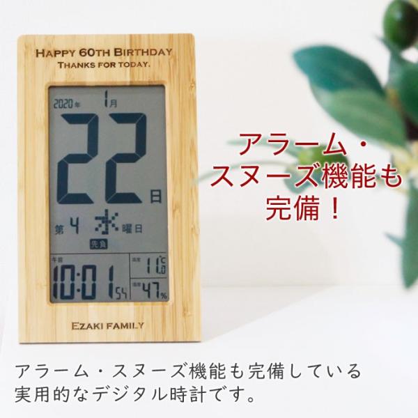 時計 名入れ デジタル時計 日めくりカレンダー 還暦祝い 名入れ デジタル 日めくりカレンダー付き電波時計 天然竹 Laser