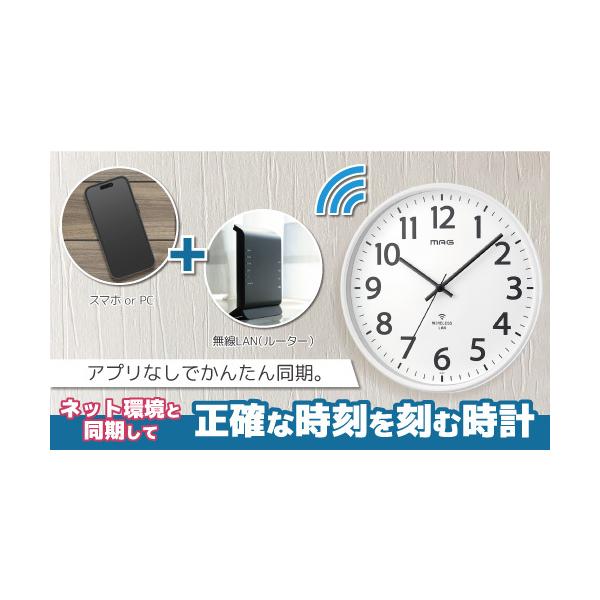 [在庫あり] ノア精密 MAG (マグ) 無線LAN(Wi-Fi)掛時計 シグナルキーパー W-811 WH-Z ネットワーク時刻情報(NTP)に同期 秒針停止時間設定機能付