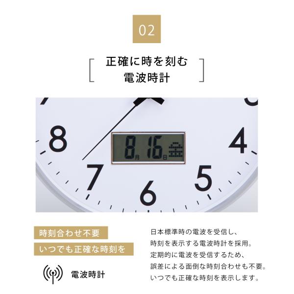 電波時計 壁掛け時計 電波 カレンダー 温度 湿度 表示 静音 連続秒針 静か 時計 北欧 おしゃれ インテリア シンプル 新築祝い
