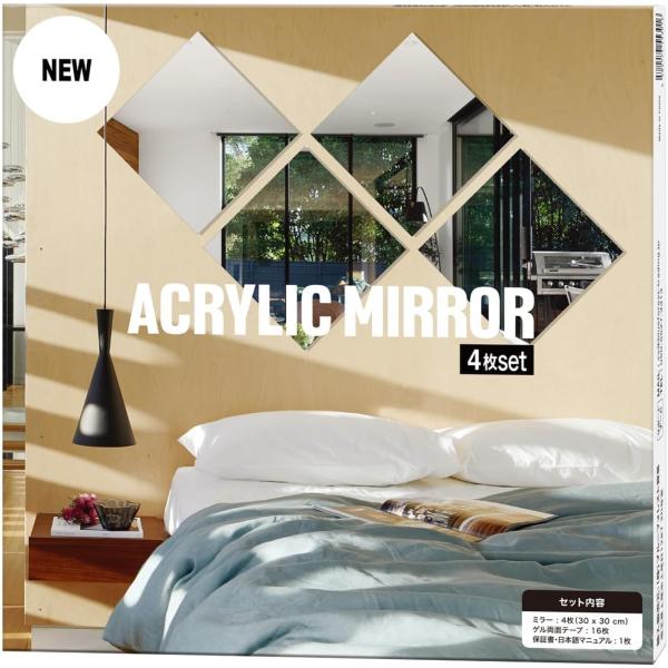 貼る鏡 割れない 壁に貼る鏡 アクリルミラー (4枚セット)【 どこでも貼れる 割れない鏡 】 全身 姿見 姿見鏡 全身ミラー 高品質 サイズ (30cm*30cm)
