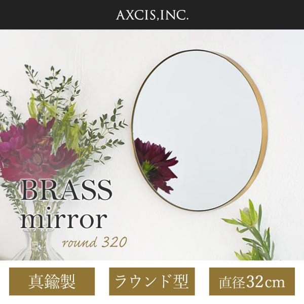 (豪華2大特典) 鏡 ミラー 壁掛け ウォール 円 丸 真鍮 ブラス ゴールド 直径32cm おしゃれ アンティーク 洗面所 HS3683 アクシス axcis
