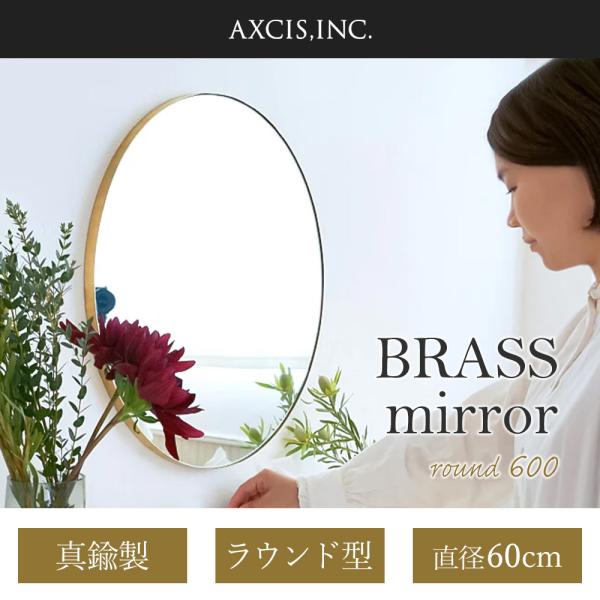 (豪華2大特典) 鏡 ミラー 壁掛け ウォール 円 丸 真鍮 ブラス ゴールド 直径60cm おしゃれ アンティーク 洗面所 HS3685 アクシス axcis