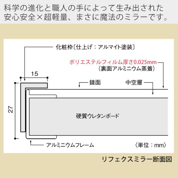 防災グッズ大賞2024優秀賞受賞! 鏡 ミラー 割れない鏡 超軽量 高精細 ウォールミラー おしゃれ 安全 軽い リフェクスミラー エア ミドル RMA-2 日本製 40×100cm