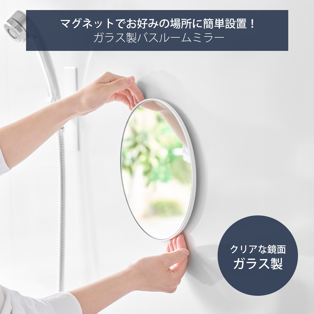 山崎実業 公式 タワー マグネットバスルームミラー tower 丸型 23cm 鏡 壁掛け 円形 くもり止め ガラス お風呂 浴室 幅23 賃貸 10175 10176