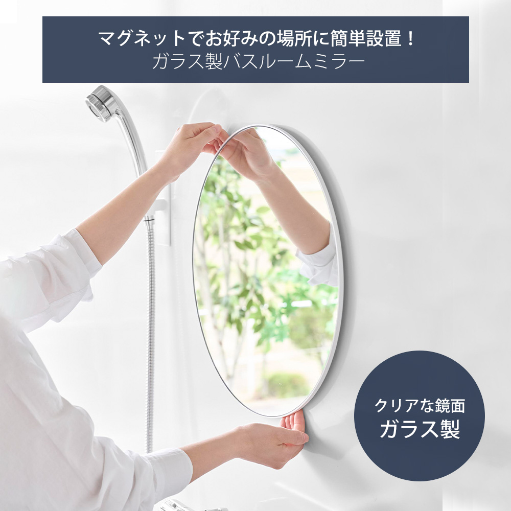 山崎実業 公式 タワー マグネットバスルームミラー tower 丸型 42cm 鏡 壁掛け 円形 くもり止め ガラス お風呂 浴室 幅42 賃貸 10177 10178
