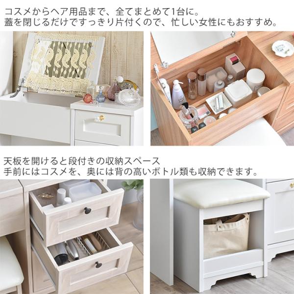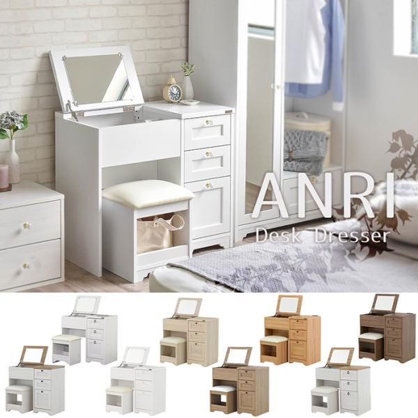 (豪華2大特典)ドレッサー デスク おしゃれ 化粧台 メイクテーブル 北欧 かわいい 鏡台 収納 木製 ミラー コンパクト コンセント ANRI
