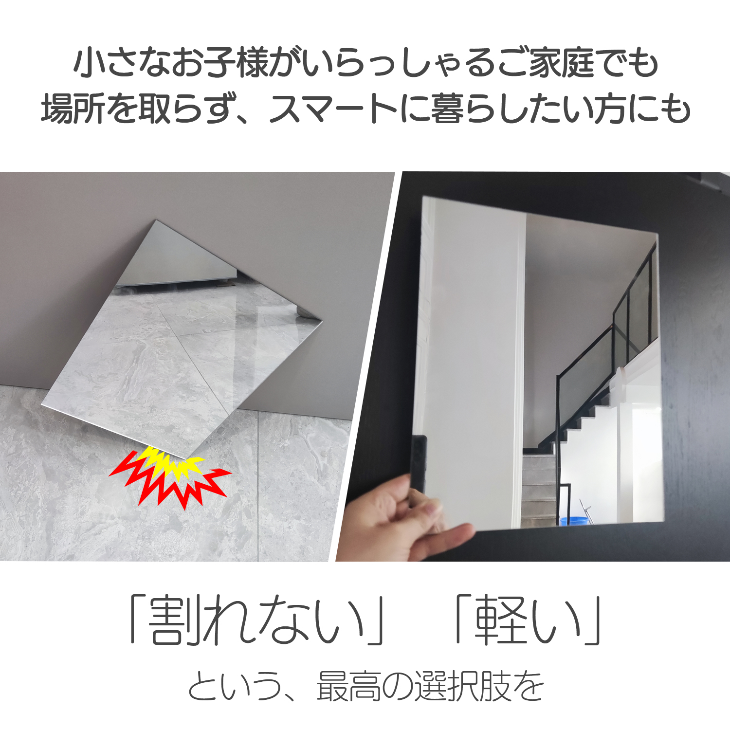 保証付 アクリル製ミラー6枚セット 割れない/114×27cm/自由組合わせ/飛散防止 取付簡単 壁掛け 高精細 コンパクト 粘着式 全身ミラー ダンスレッスンにも最適!