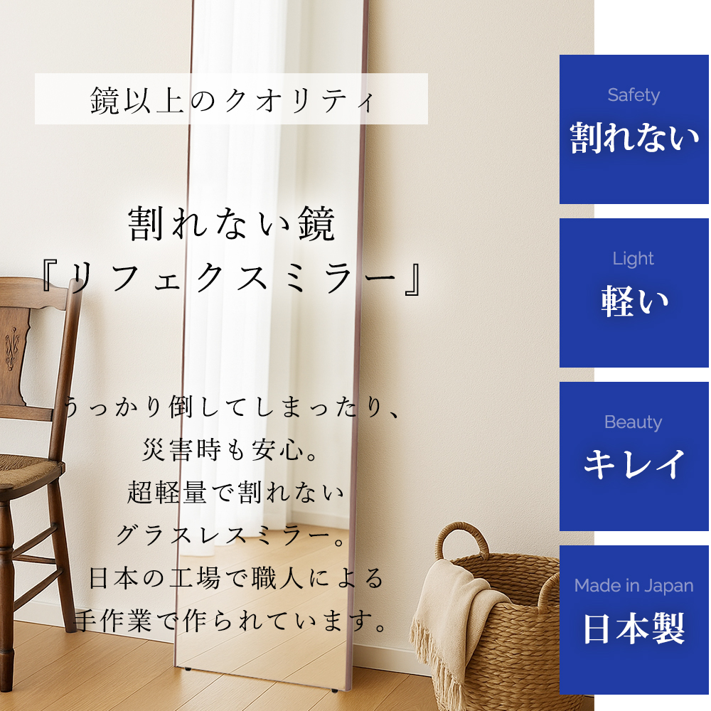 (豪華2大特典)防災グッズ大賞 優秀賞受賞! 割れない 鏡 ミラー 軽量 安全 超薄型 綺麗 リフェクス フィルム Aile エール RMAL-1 日本製