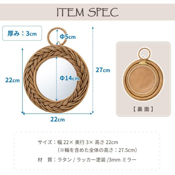 鏡 壁掛け ウォールミラー 壁掛け鏡 壁掛けミラー ミラー おしゃれ ラタンミラー 丸鏡 丸 壁鏡 木製 円形 軽量 ラタン アンティーク かわいい シンプル