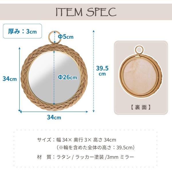 鏡 壁掛け ウォールミラー 壁掛け鏡 壁掛けミラー ミラー おしゃれ ラタンミラー 丸鏡 丸 壁鏡 木製 円形 軽量 ラタン アンティーク かわいい シンプル